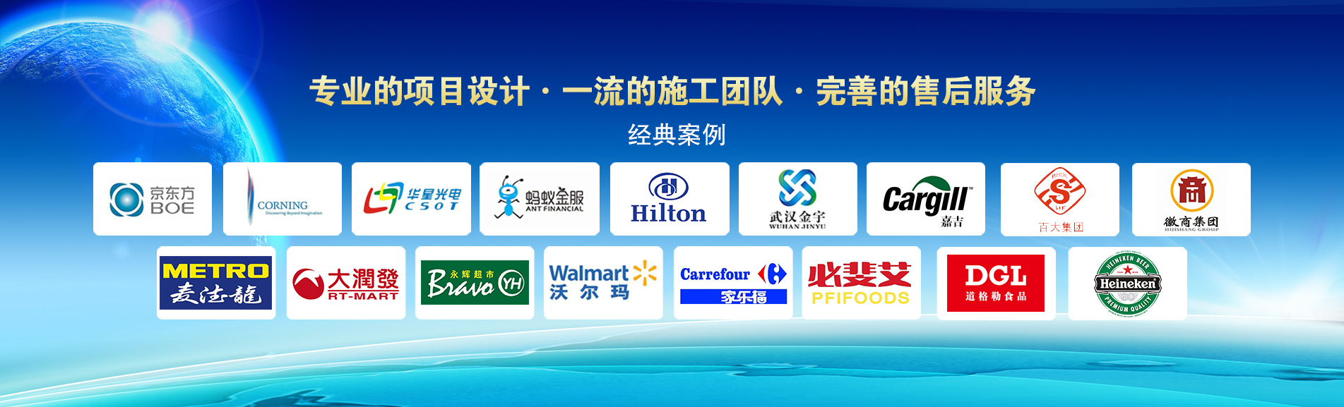 冷凍冷藏設(shè)備大型冷庫項(xiàng)目: 武漢中百物流冷庫(40000㎡)、蘇州、北京普洛斯大型物流庫(17000㎡)、沈陽佳德物流冷庫(20000㎡)、上海東航配餐物流庫(6000㎡)、杭州華商勾莊物流冷庫(24000㎡)、安徽安心蔬菜綠色食品冷庫(12000㎡)、武漢金宇冷庫(35000㎡)、必斐艾食品廠(14000㎡)、中國-東盟(百色)農(nóng)產(chǎn)品交易中心冷庫物流工程(30000㎡)、遵鐵物流冷鏈物流區(qū)建設(shè)項(xiàng)目中心冷庫物流工程(16500㎡)、長(zhǎng)沙云冷產(chǎn)業(yè)園冷庫物流工程(21000㎡)等;大型中央空調(diào)項(xiàng)目: 武漢康寧顯示玻璃廠廠房、武漢京東方模組廠房、武漢華星光電模組廠房、深圳華星光電模組廠房,杭州阿里巴巴辦公樓,舟山波音737機(jī)場(chǎng)辦公樓,南京江北能源站、上海金融大酒店等